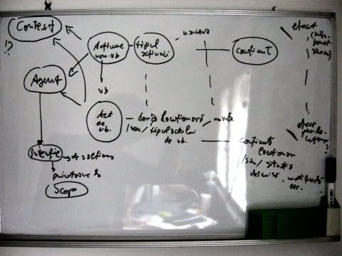 Pe scurt, m-am gandit ca metodologia pentru studiul rationalitatii succesiunilor de actiuni ar trebui sa fie urmatoarea: sa observ asemanari si diferente intre secvente de actiuni verbale si non-verbale si sa gasesc reguli pentru acestea pe baza analogiilor. Din punctul asta de vedere, intentia mea initiala de a aplica concepte specifice studiului logic al propozitiilor la actiuni s-ar putea sa fie gresit orientata (cred ca lucrul asta a iesit mai bine in evidenta atunci cand m-am gandit la actiuni negative, respectiv la “cum poate fi aplicat conceptul de negatie actiunilor”).